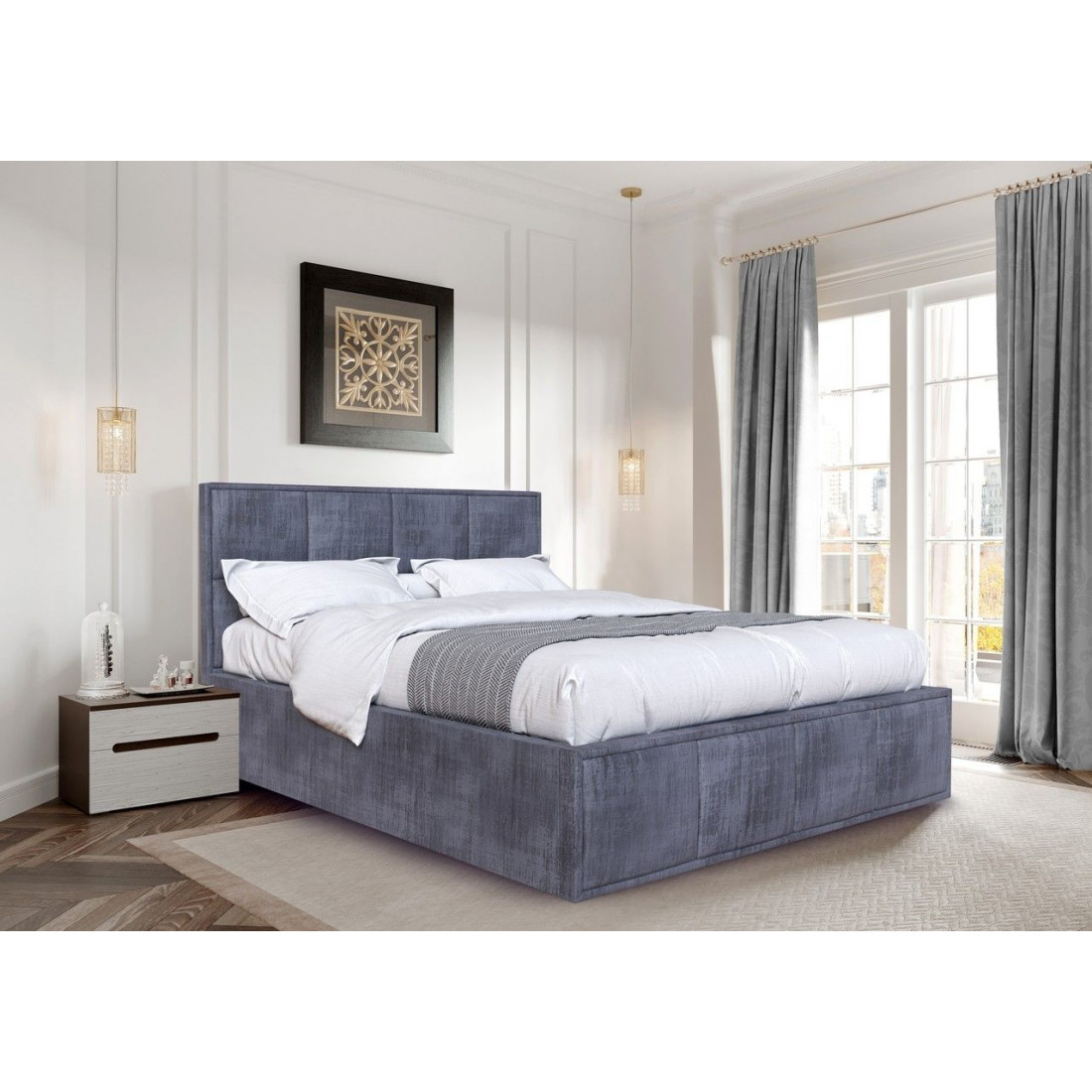 Кровать можно комплектовать ортопедическим основанием на пяти опорах или бельевым ящиком с подъемным ортопедическим основанием.