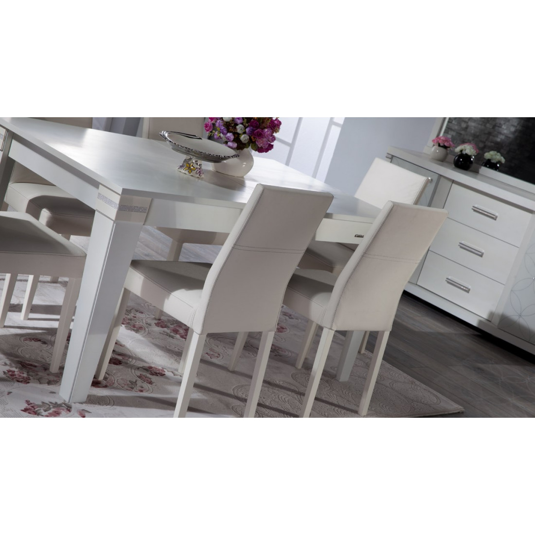 Раскладной обеденный стол MIRA-04 (белый) серии Мира от Беллона обладает оптимальными размерами для столовой, гостиной средних размеров или просторной кухни. В сложенном виде за ним комфортно расположится семья из шести человек, в конструкции предусмотрена вставка, увеличивающая модель в длину на 40 см. Купить раскладной стол рекомендуем со стульями – комплект из шести стульев по акции стал доступней!