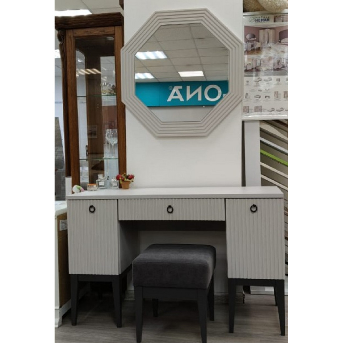 РАСПРОДАЖА С ЭКСПОЗИЦИИ СТОЛ ТУАЛЕТНЫЙ С ЗЕРКАЛОМ! ЦВЕТ КАШЕМИР СЕРЫЙ! БАНКЕТКА В  ПОДАРОК!