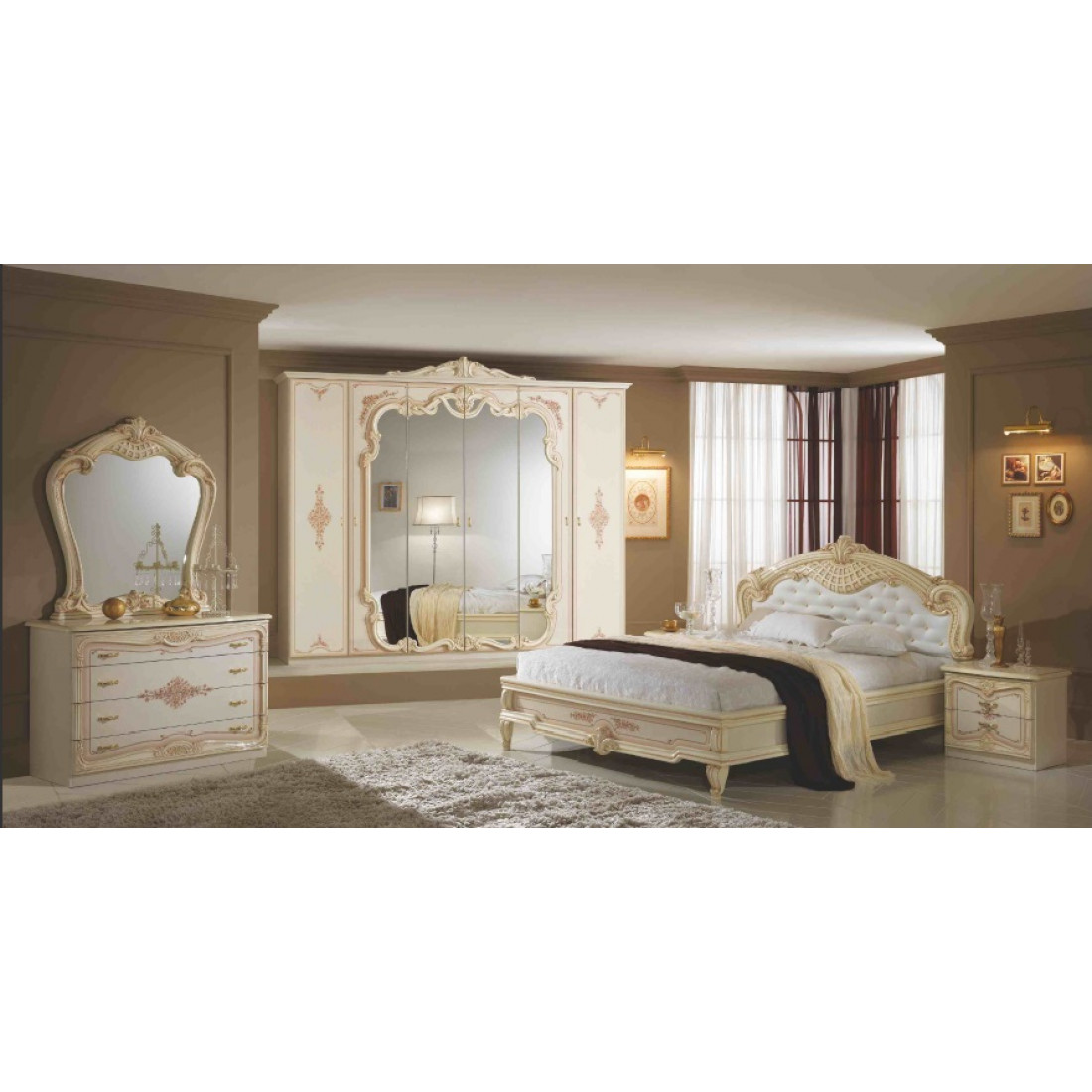 Спальня Диана (беж) композиция 2 от Российской фабрики «ДИА мебель» выполнена в бежевом глянцевом цвете, ручки цвета позолоты и глянцевое покрытие придадут богатую атмосферу в спальне. Оригинальный рельеф фасадов задает определенный шарм всему интерьеру. Только истинные ценители красивого и прекрасного по достоинству смогут оценить спальню "Диана".