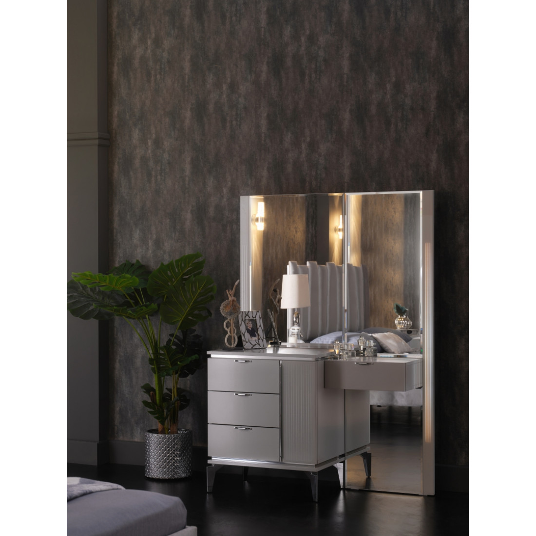 В изголовье между мягкими элементами располагаются зеркала.