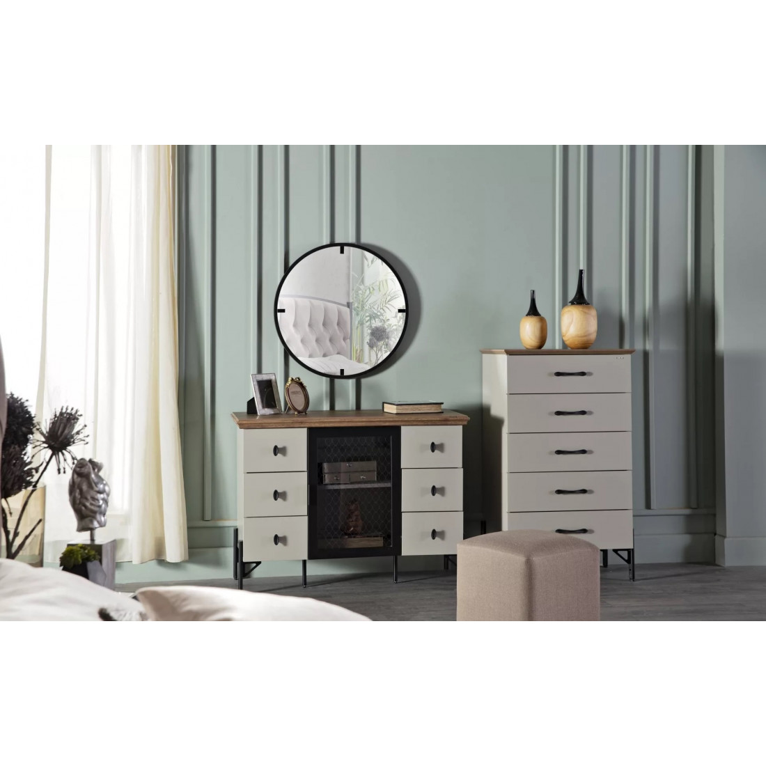 Туалетный столик "Палвин" выполнен в стиле лофт. Интересная дизайн подчеркивает уникальность среди конкурентов, а идеально подобранные размеры изделия делают его крайне удобным для использования.